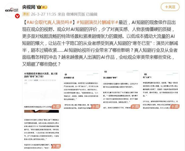 值得注意的是,田园并非首个公开谈及行业困境的短剧演员。在她之前,已有多位演员公开谈论AI技术对短剧行业的冲击。随着AI换脸、数字人等技术日益成熟,短剧演员正成为首批面临被替代风险的群体之一,这加剧了行业内部对生存空间与艺术价值的普遍焦虑。
