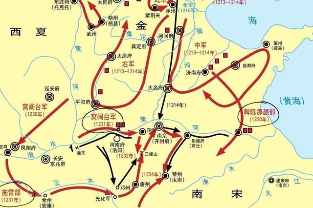 蒙古灭金进军路线图